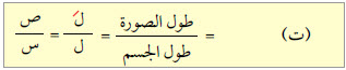 أو أن طول الصورة المتكونة إلى طول الجسم يساوي بعد الصورة عن قطب المرآة إلى بعد الجسم عنها .