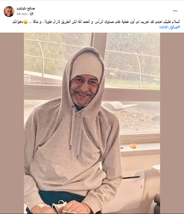وأضاف في منشور آخر، صبيحة الجمعة: “السلام عليكم أحبتي لقد أجريت لي أول عملية على مستوى الرأس والحمد الله لكن الطريق لازال طويلا.. وشاقا … دعواتكم”.